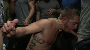 Submissive male gets intimate with a bunch of men at the pub