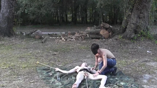 Black male slave endures rough waxing during BDSM kinks