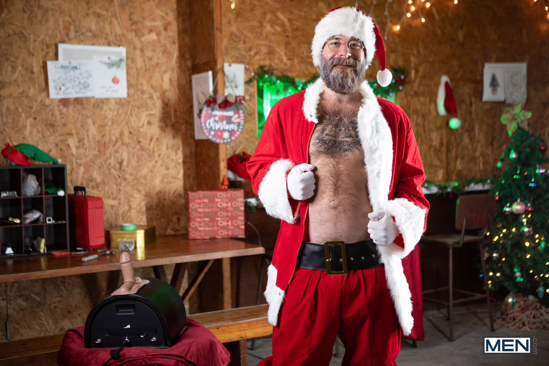The old guy plays Santa while his twink stepson plays an elf, and they both pose hot in excellent gay kinks when they suck each other's cocks and have loud anal sex in very intimate gay perversions.