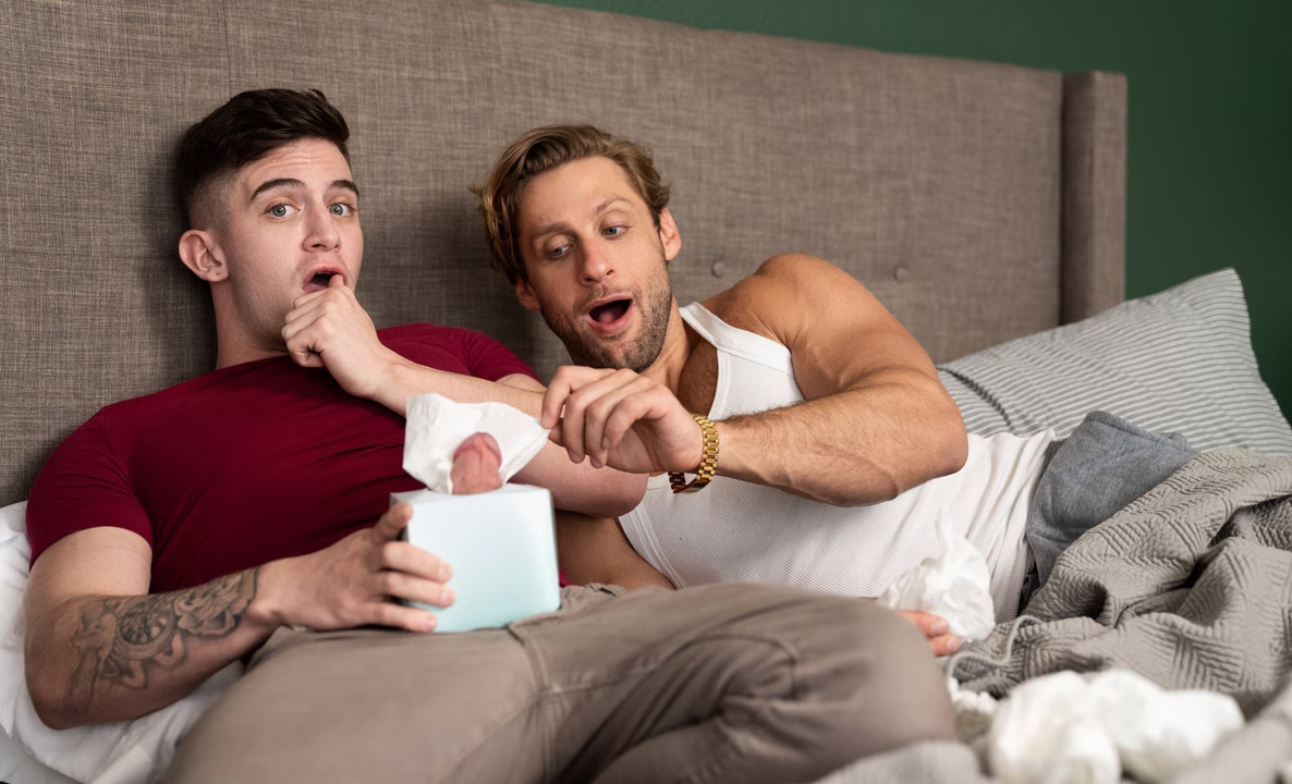 This chubby ass blonde woman catches her muscular hubby when he fulfills his sexual fantasies with another man, and for her surprise the horny hubby seems very pleased to pose for her when he tries gay anal.
