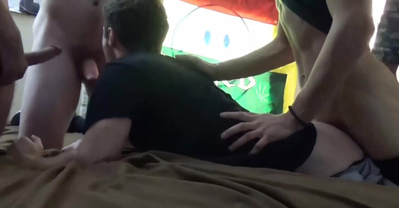 The lanky perverts take a break from studying to organize a sex party. There are a couple of fellows in this one and they are having sex in doggy style and prone bone. Lots of facefucking here too.